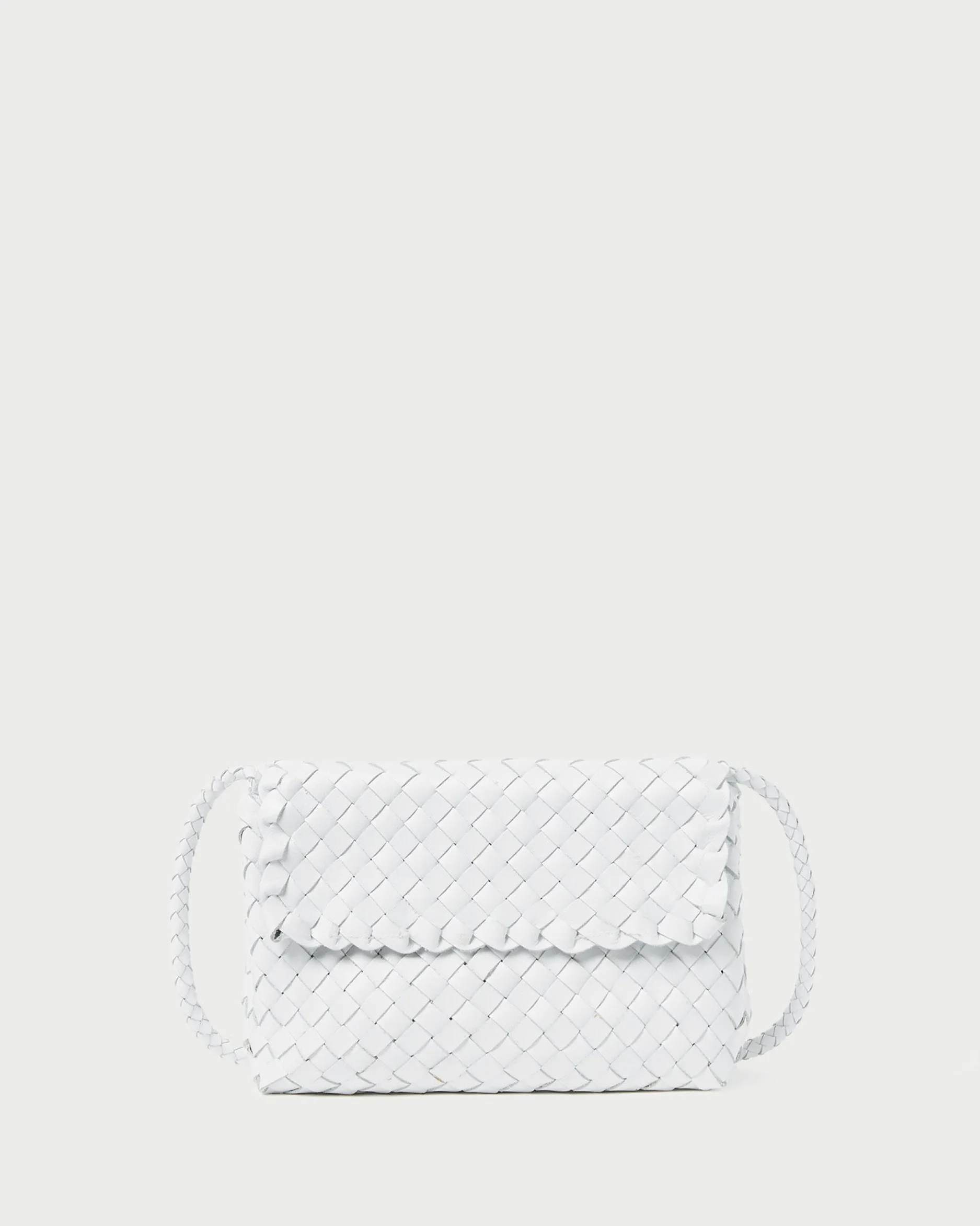 Welcome to Loeffler Randall. Discover our collection of beautiful, handcrafted styles from shoes to RTW to accessories. |Shoulder bag in timber brown woven leather. Features a magnetic flap closure, blind embossed leather logo patch, and interior card slot.|Buffalo leather develops a beautiful patina by deepening in color over time. It is vulnerable to water stains and tonal changes from the sun. It is recommended to avoid contact with lighter fabrics, as vegetable dyes have the potential to transfer.|Shoulder bag in white woven leather. Features a flap magnetic closure, blind embossed leather logo patch, and interior card slot.|Buffalo leather develops a beautiful patina by deepening in color over time. It is vulnerable to water stains and tonal changes from the sun. It is recommended to avoid contact with lighter fabrics, as vegetable dyes have the potential to transfer.|Shoulder bag in gold woven leather. Features a magnetic flap closure, blind embossed leather logo patch, and interior card slot.|Refurbish seasonally or as needed by a professional. Avoid consistent exposure to water.|Shoulder bag in timber brown woven leather. Features a magnetic flap closure, blind embossed leather logo patch, and interior card slot.