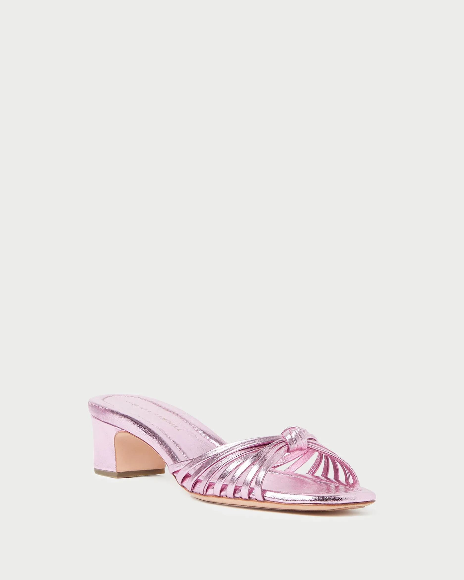 Welcome to Loeffler Randall. Discover our collection of beautiful, handcrafted styles from shoes to RTW to accessories. |Knotted mid-heel sandal in metallic gold Italian nappa leather. Features a padded leather footbed, a tonal sole, an open toe. 1.75-inch heel.|Nappa is a soft and supple leather and may show wear and scuffing. Refurbish seasonally or as needed by a professional. For best results, avoid consistent exposure to water.|Knotted mid-heel sandal in metallic pink Italian nappa leather. Features a padded leather footbed, tonal sole, an open toe. 1.75-inch heel.|Nappa is a soft and supple leather and may show wear and scuffing. Refurbish seasonally or as needed by a professional. For best results, avoid consistent exposure to water.|Knotted mid-heel sandal in metallic gold Italian nappa leather. Features a padded leather footbed, a tonal sole, an open toe. 1.75-inch heel.