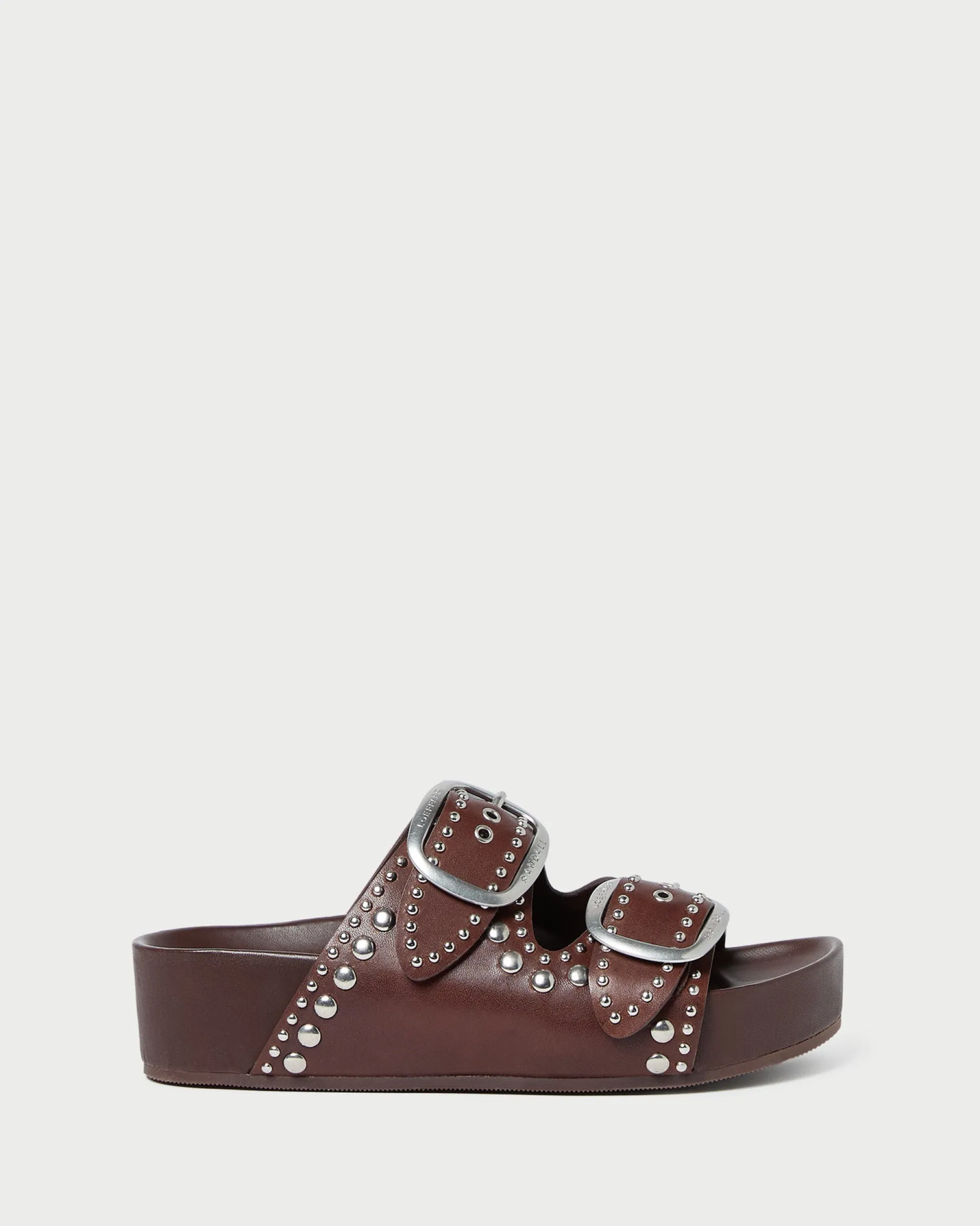 Loeffler Randall Jack Espresso Leather Studded Sandal| Flat Sandals