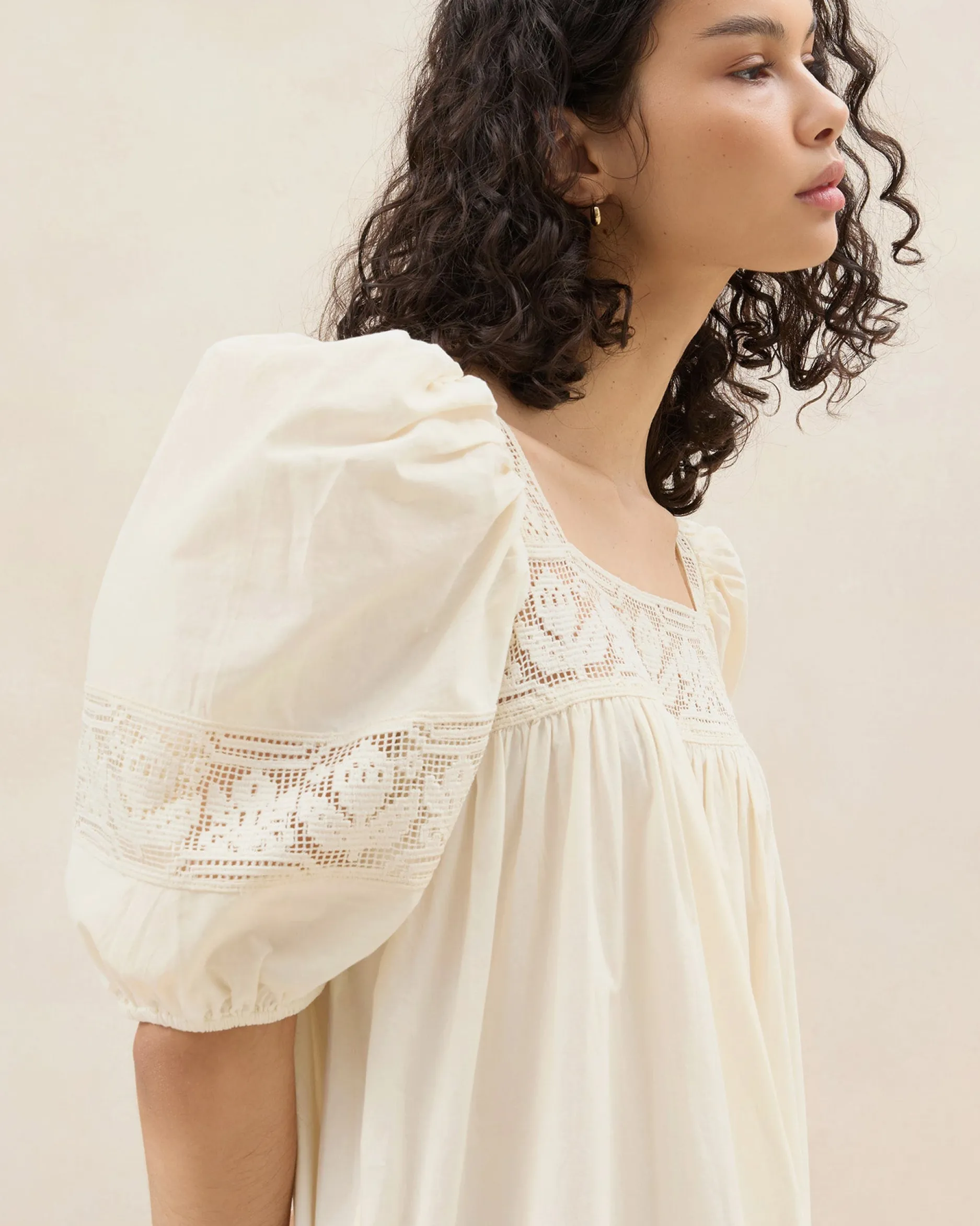 Welcome to Loeffler Randall. Discover our collection of beautiful, handcrafted styles from shoes to RTW to accessories. |Maxi dress in cream-colored cotton with tonal lace. Features puff sleeves, a squared neckline, and a flowy fit. Unlined. Pulls on.|Dry clean only.|Maxi dress in cream-colored cotton with tonal lace. Features puff sleeves, a squared neckline, and a flowy fit. Unlined. Pulls on. SizeXSSMLXLBust33"35"37"39"41"Length49.5"50"50.5"51"51.5"