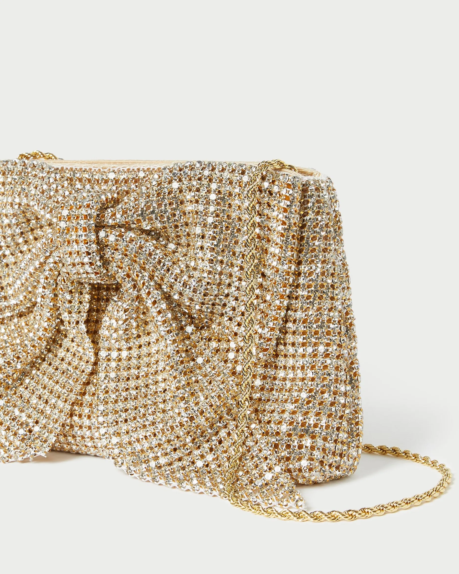 Loeffler Randall Jolene Gold Diamanté Bow Clutch| FOR THE BRIDE|Clutches