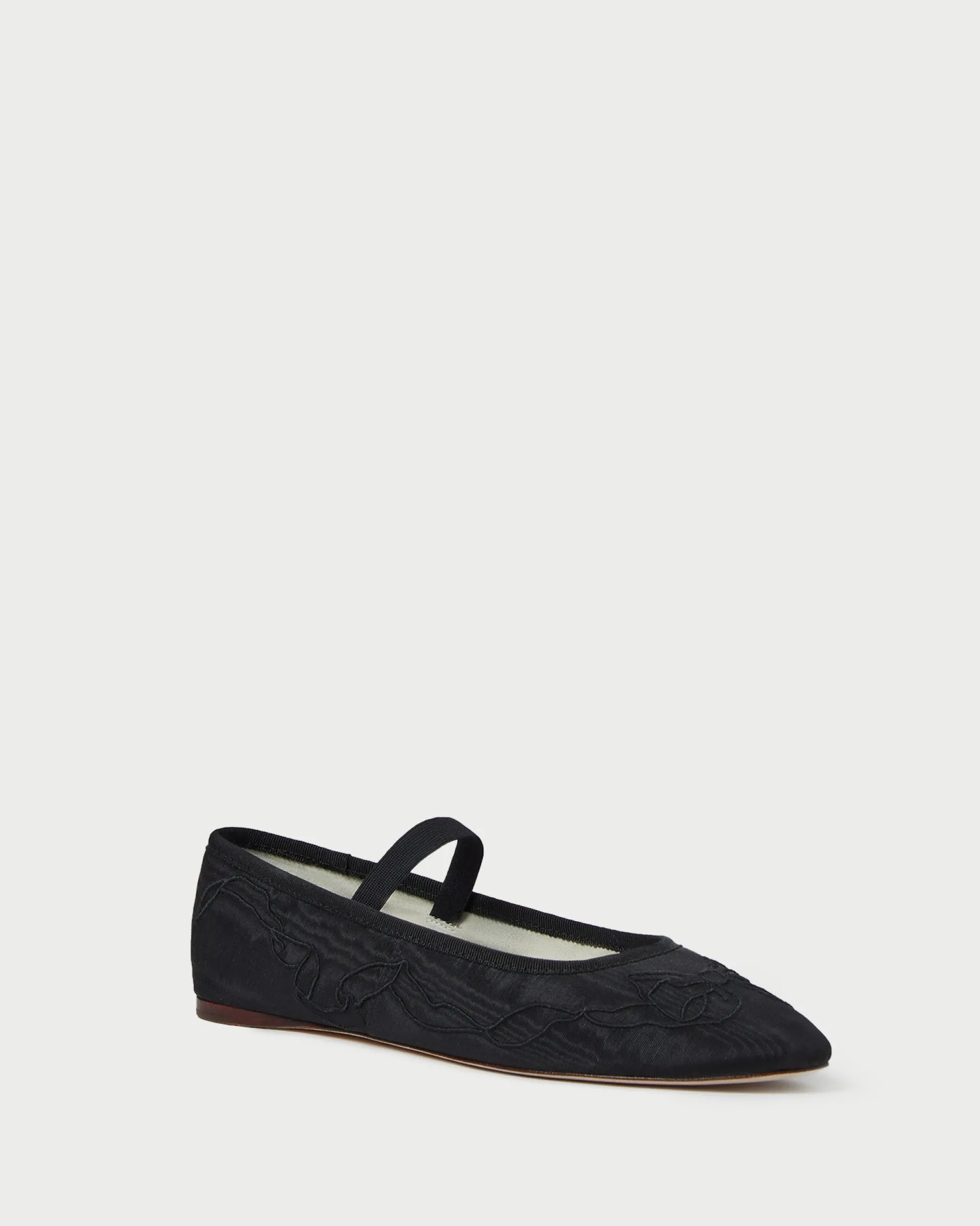 Welcome to Loeffler Randall. Discover our collection of beautiful, handcrafted styles from shoes to RTW to accessories. |Soft black moiré ballet flat with a custom embroidered bow motif hand-drawn by Sandeep Salter. Features a padded leather footbed with special edition Loeffler Randall and Salter House collaborative logo, an almond toe, and an elastic bridge strap.|Treat with a water repellent to ward off dirt and stains prior to wear. Avoid contact with water, and clean with professional care only.|Soft black moiré ballet flat with a custom embroidered bow motif hand-drawn by Sandeep Salter. Features a padded leather footbed with special edition Loeffler Randall and Salter House collaborative logo, an almond toe, and an elastic bridge strap.