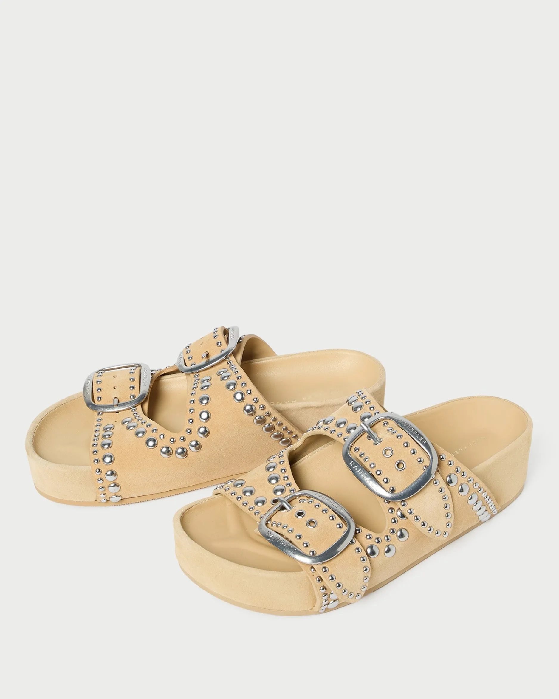Welcome to Loeffler Randall. Discover our collection of beautiful, handcrafted styles from shoes to RTW to accessories. |Two-band platform footbed sandal in espresso Italian vachetta leather with nickel stud detailing. Features a padded leather footbed with gold stamped logo and an open toe. Slips on. 1.5-inch platform.|Refurbish seasonally or as needed by a professional. For best results, avoid consistent exposure to water.|Two-band platform footbed sandal in saffron-hued Italian split suede with nickel stud detailing. Features a padded leather footbed with gold stamped logo and an open toe. Slips on. 1.5-inch platform.|Suede is delicate. It should be kept away from water and stored in a dust bag to avoid matting. Suede fibers can be restored with a suede sponge or brush, and refurbished seasonally or as needed by a professional.|Two-band platform footbed sandal in espresso Italian vachetta leather with nickel stud detailing. Features a padded leather footbed with gold stamped logo and an open toe. Slips on. 1.5-inch platform.